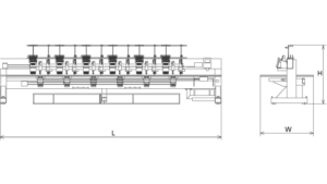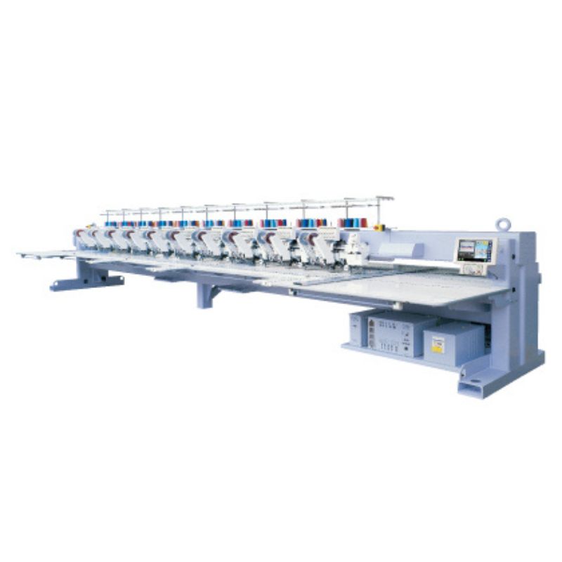 One color for lock stitch zig zag and either 9 or 12 colors for standard embroidery. Available from 6 to 12 heads, with an embroidery area of 750mm or 1000mm (H) x 560mm to 640mm (V). A variety of attachments are available for cording, taping, zig zag, rolled stitch, back cording, frill sewing.