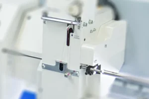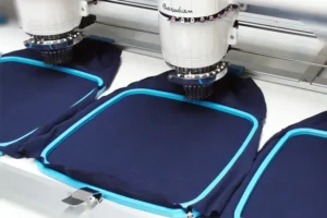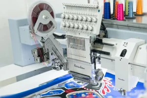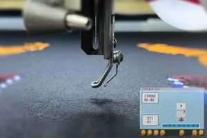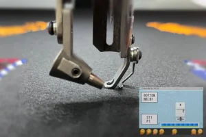 Bobbin thread can be trimmed automatically before long jumps then switch to regular embroidery head, and after the design is completed.
