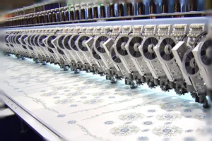 Large, continuous embroidery designs can be produced by controlling each head individually.