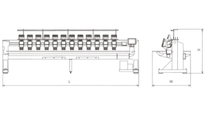 Equipped with a 9-needle, rotary head with machines available up to 12 heads. This model meets a wide range of needs with a maximum embroidery area of 600mm (H) x 350mm (V).