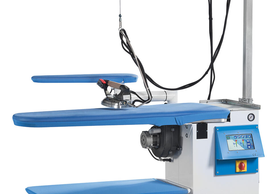 Non-heated steaming, vacuum and blowing ironing board with touch screen control panel, 6 l stainless steel boiler and iron