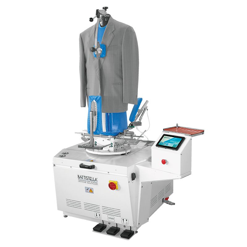 Rotary booth for ironing any garment to be connected to a steam source.