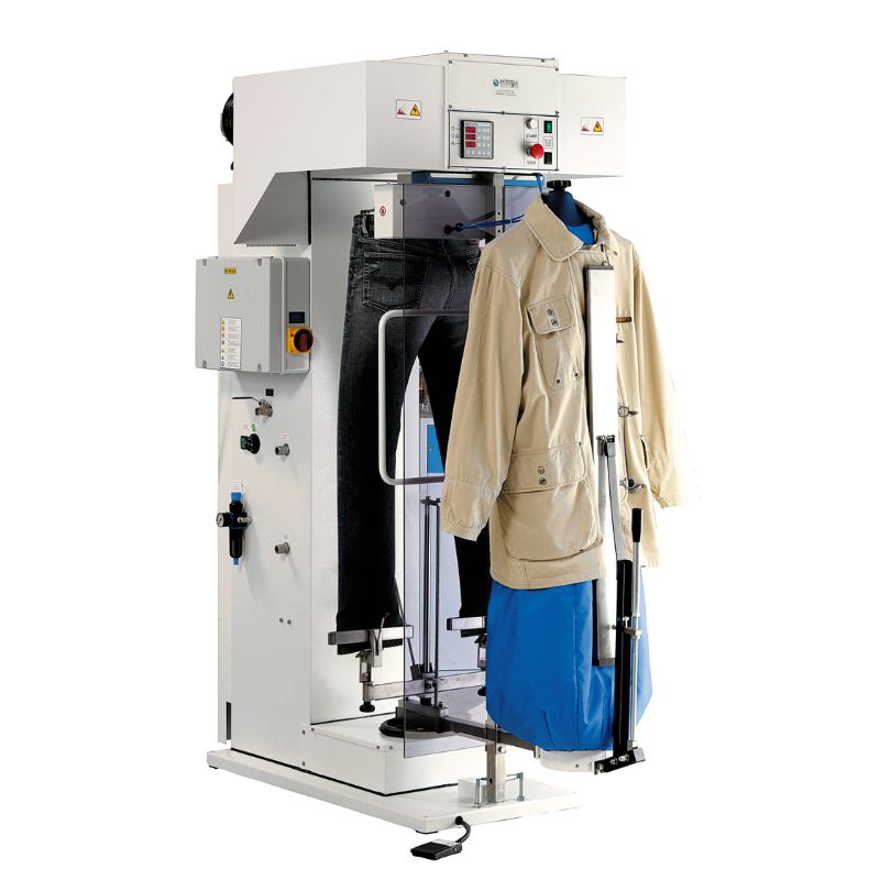 Pneumatic trouser press with transverse traction and 10 L boiler