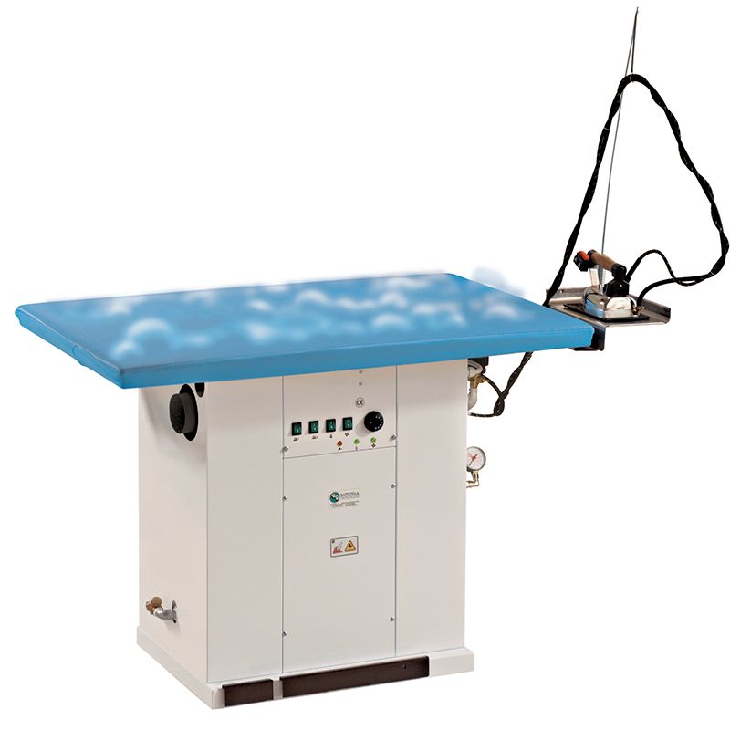 Heated, vacuum and blowing rectangular ironing board, adjustable in height