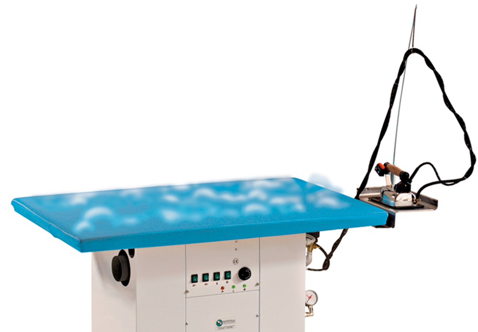 Rectangular ironing board with vacuum, heating and steaming options with iron unit To be connected to the steam source