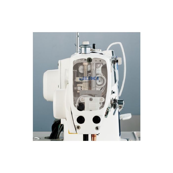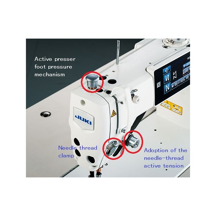 The machine starts sewing with the needle thread clamped and held with its unique air & ball type clamp. High-quality seams, thereby, are promised without leaving bird’s nests (thread tangling) on the wrong side of the material.