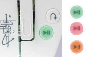 | Start/stop button | Green: Ready to start and/or while sewing Red: Not ready to start Orange: Machine is in bobbin winding condition |