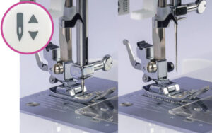| Presser foot lift (1 step/2 steps) | Lever system: 6mm / 11mm |