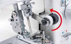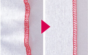 Automatic Rolled Hemmingcan now be created quickly and easily with built-in fingertip control. There is no need to change the foot or plate. |