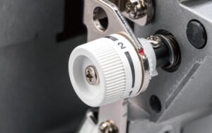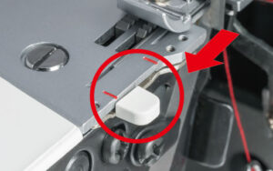 Lower Knife Adjustment Knobadjusts the lower knife quickly to change the width of fabric in the seam allowance, for perfect seams and rolled edges. |