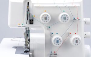 2-Needle, 2/3/4 Thread Overlock with Lower Looper Threader, Automatic Rolled Hemming and Differential Feed Maximum 1,500 spm Designed with JUKI industrial technology, Overlocking Width – Left Needle: 6 mm / Right Needle: 4 mm Rolled Hem: 2 mm