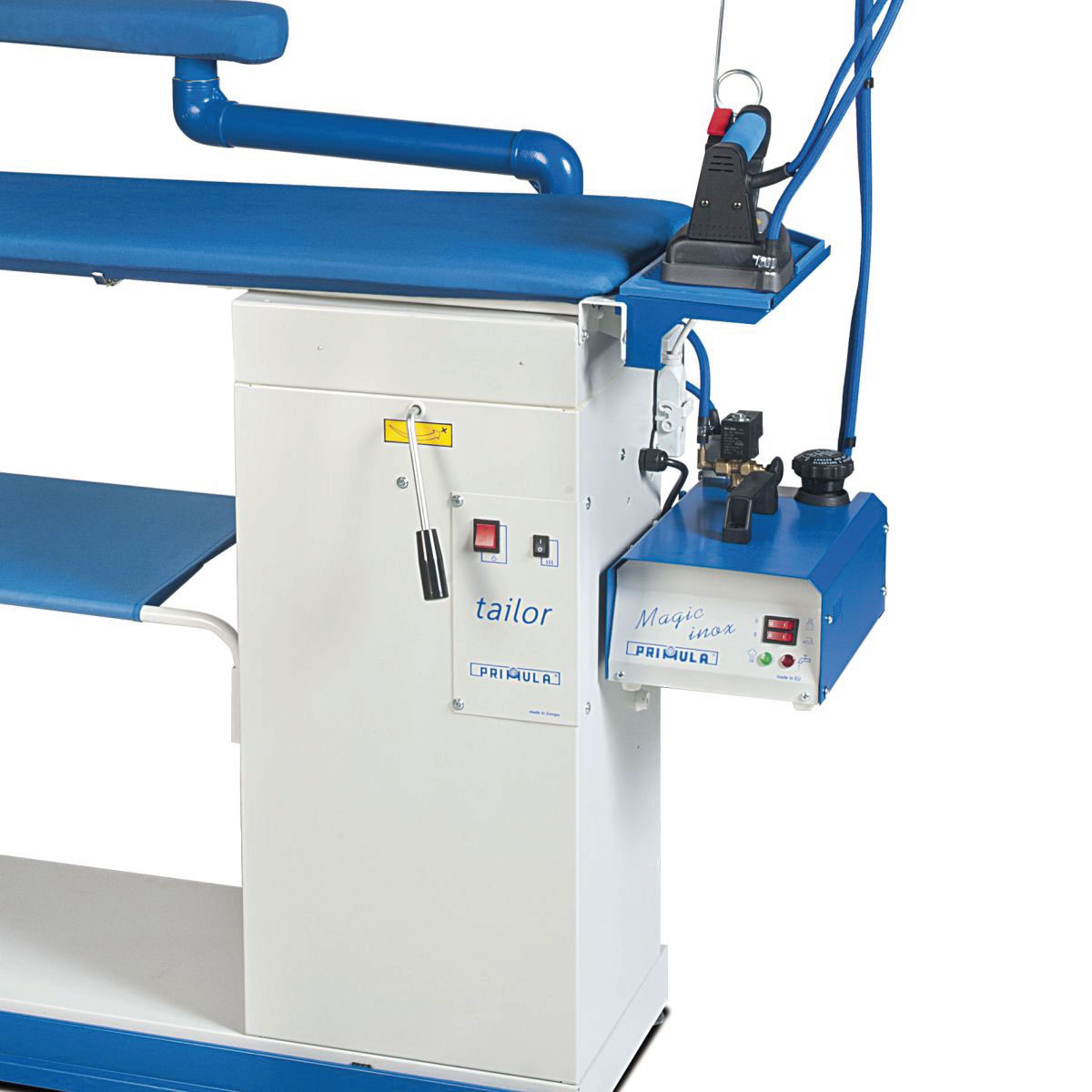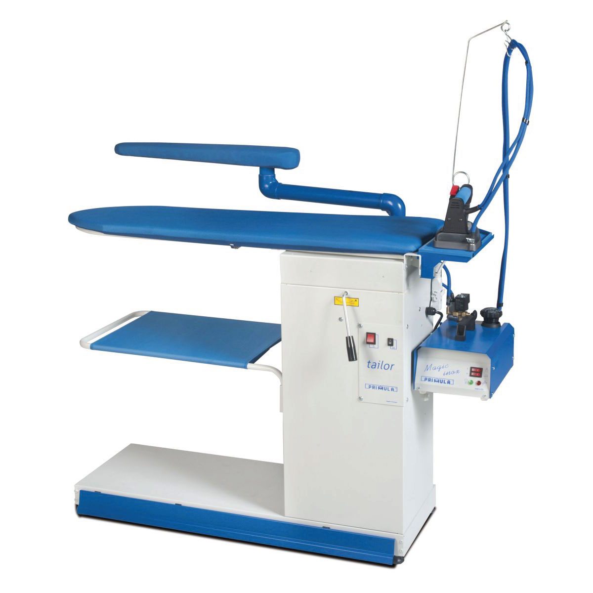 The Primula Tailor Ironing Table is a modern professional solution for perfect garment finishing. It is designed for workshops, ateliers, and home users. This innovative table includes heating, suction, and blowing functions for superior fabric control. The table transforms within three minutes into two switchable ironing surfaces. This flexibility supports multiple garment types and working styles. The ergonomic design improves posture and reduces operator fatigue. Almost noiseless operation creates a comfortable working environment. Powerful suction holds fabric firmly during pressing. The blowing function lifts delicate fabrics safely for smooth finishing. This combination delivers excellent ironing results consistently. The table enhances productivity and workflow efficiency significantly. It supports both light and heavy garment applications. Every detail focuses on comfort, control, and performance.