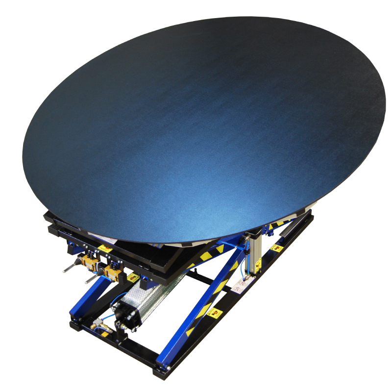 Table ST-3/OS is designed for leather cutting. Swivel tabletop has diameter 200 см and is made of laminated chipboard. Tabletop can be inclined at a 17° angle. This creates optimal working conditions during leather cutting – leather piece can be rotated without moving.