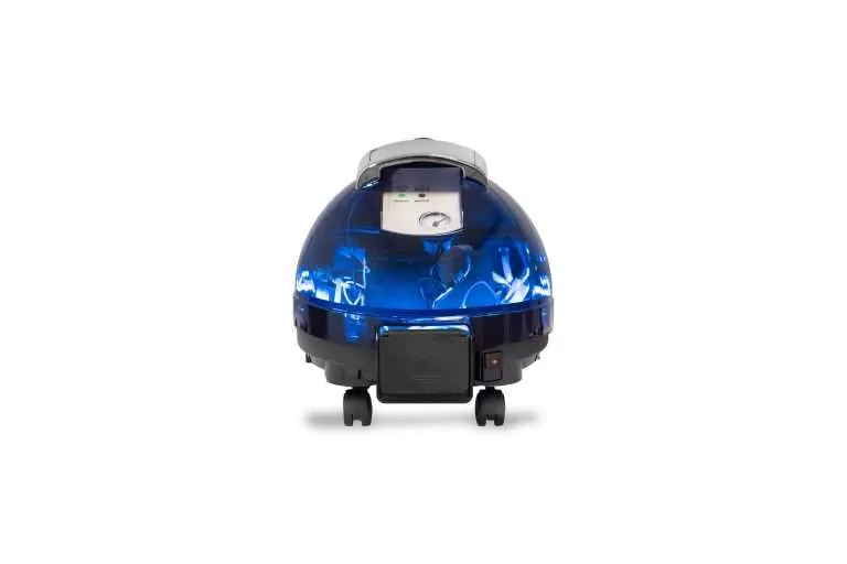 Steam cleaner with automatic refill, light blue housing and LED lights. This dry steam system cleans, sanitizes and disinfects in an eco-friendly way. The presence of special holders on the basement allows you to carry accessories with the cleaner.